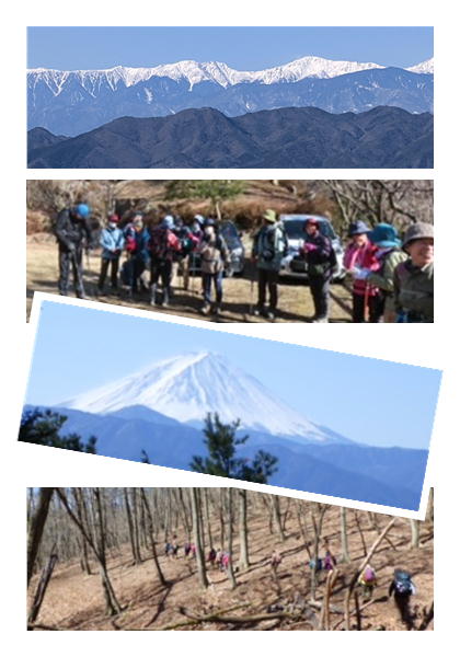 数年前登った山ですが、急登でした。宴を広げたら、暴風が吹き一目散に下山。駅に向かっている時、周りの山々は雪が降っていた。やっと『富士駅』まで来たら、東海道線が遅れているとのこと。今日は予定外もあったけれど、今年の山に夢膨らませ、また楽しく歩けますように。