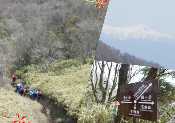 2日間の変化に富んだ山行。初日は朽ちかけた丸太と壊れかけた仮橋のスリリングな渡渉に悪戦苦闘、無事通過にホッ・・・。翌日の那須岳山頂から360°の素晴らしい景観、また姥ヶ平から観る那須岳の眺望は圧巻。天気にも恵まれ、メンバーの頑張りに苦しくも楽しい宿泊山行でした。 ナベさん、綿密な計画ありがとう!!